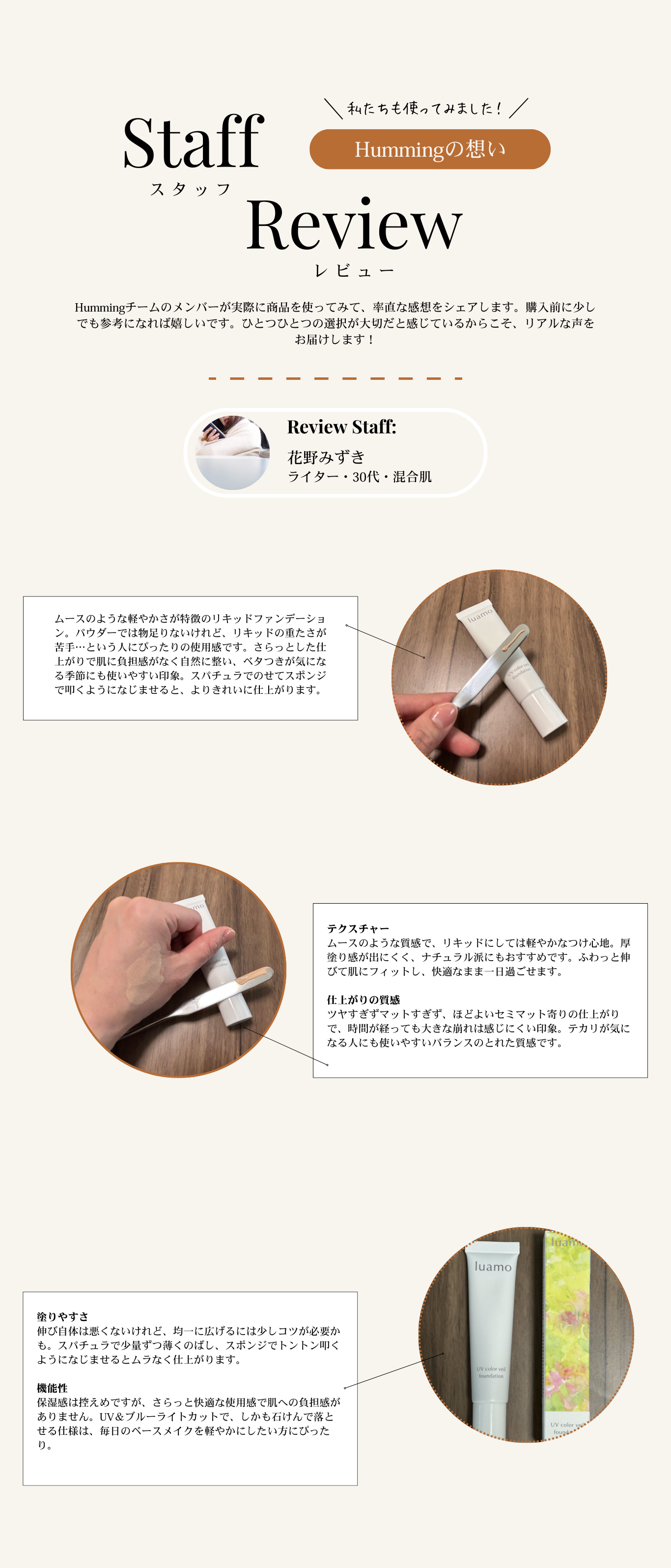 そこで「luamo(ルアモ)」は、「天然成分だけで、白浮きせずさらっと使える日焼け止めをつくれないか?」というシンプルな問いからスタートしました。
